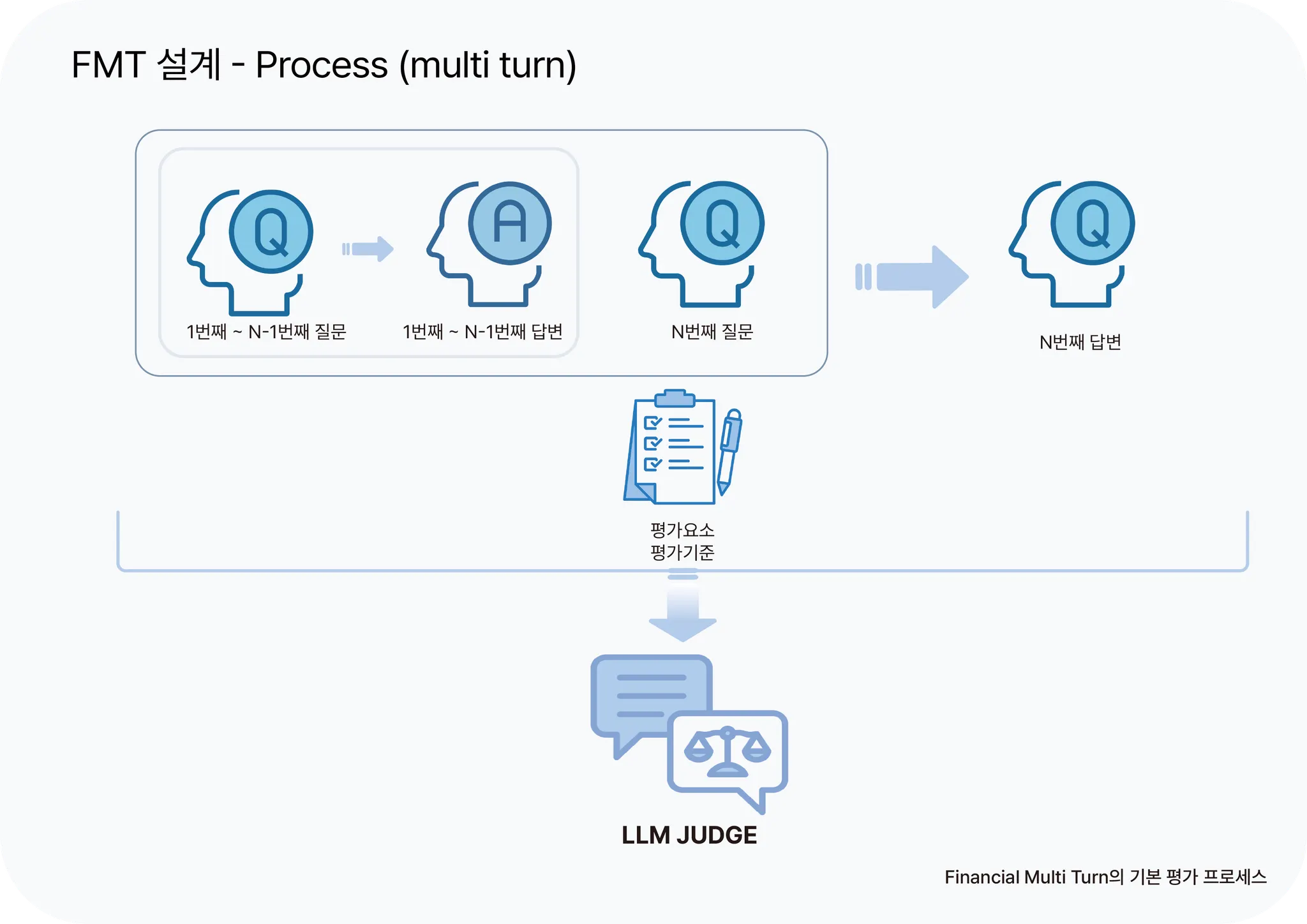 멀티턴 상황에서 대화의 연속성 평가를 반영하기 위해, 사용자가 다음 질문을 할 때마다 앞서 수행된 질의응답을 앞부분에 입력해 주었습니다. 멀티턴 LLM 능력 평가는 마지막 답변을 기준으로 앞선 대화의 맥락을 잘 유지했는지까지 확인했습니다.