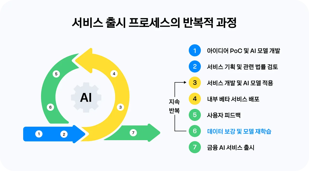 카카오뱅크의 모든 대고객 서비스는 금융 서비스이기에 단순한 기능 편익을 제공하더라도 관련 규제를 세심하게 지켜야 했습니다. 그중에서도 개인정보보호와 관련된 지침을 우선 준수했습니다. 일례로, 서비스 절차에 대한 초기 기획은 금융 사기 예방이 자동으로 가능하도록 편의성을 고려해, 수신한 모든 문자의 스미싱 여부를 실시간 알려주는 방식이 논의되었습니다. 하지만 2018년 유럽연합(EU)에서 개인정보보호 규정(GDPR)이 시행되면서 스마트폰에서 데이터 수집과 사용에 대한 관리 감독이 강화되었고, 사용자의 문자에 상시 접근하려면 모바일 OS별로 추가 권한을 할당 받는 심사가 필요했습니다. 따라서 개인정보를 보호하기 위한 안전 지침들을 더 중요하게 수용하여 사용자가 직접 복사 및 붙여넣기를 하는 방식으로 기획안을 수정하게 되었습니다. 금융 AI 서비스 구현 과정은 성능 및 편의성 만족과 고객 권리를 모두 충족하기 위해 반복 검증을 거쳐야만 했습니다.