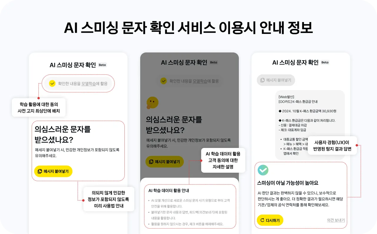 본 글의 일부는 <카카오 Tech Ethics> “더 안전한 금융거래를 지원하는 ‘AI 스미싱 문자 확인’ 서비스”에도 같이 발행되었습니다. 인용된 이미지의 저작권과 출처는 <카카오 Tech Ethics>입니다.