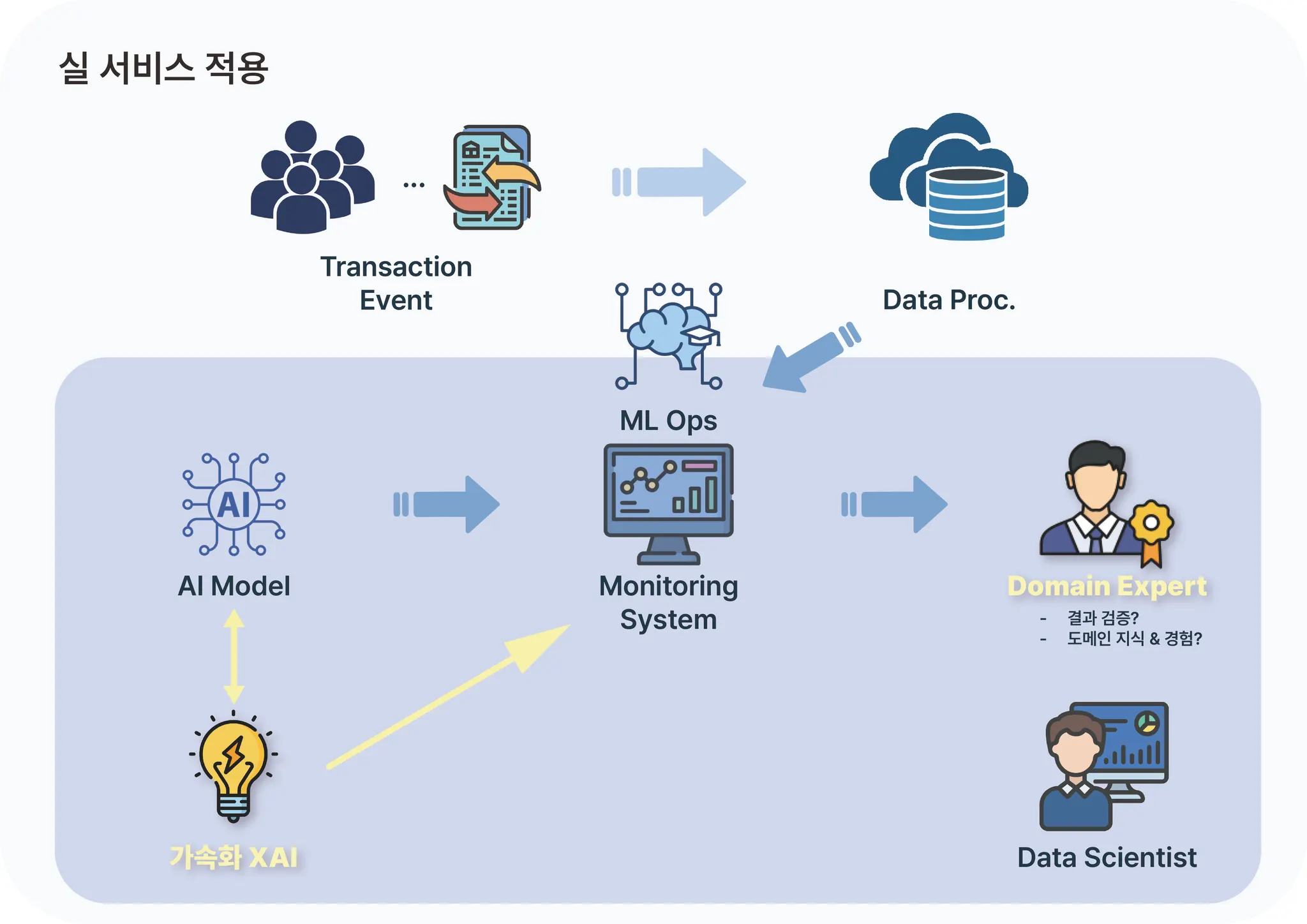 가속화가 필요한 이유는 크게 2가지 입니다. 먼저, “실시간성”을 보장해야 하는 업무가 있습니다. 카카오뱅크에서는 고객의 소중한 자산을 지키기 위해 이상거래탐지 업무에 AI를 활용하고 있습니다. 가령, 개발한 이상거래탐지 인공지능 알고리즘이 보이스피싱으로 의심되는 거래를 실시간으로 탐지했는데, 탐지된 이유를 살펴보기 위한 XAI 결과를 3초 이상 기다려야 한다고 생각해보겠습니다. 이 때, 탐지된 대상이 실제 보이스피싱 피해자가 범죄자 계좌로 송금하는 거래였다면, 3초 뒤가 아니라 실시간으로 빠르게 해당 고객의 금융거래를 제한하여 추가적인 피해를 막아야 합니다.