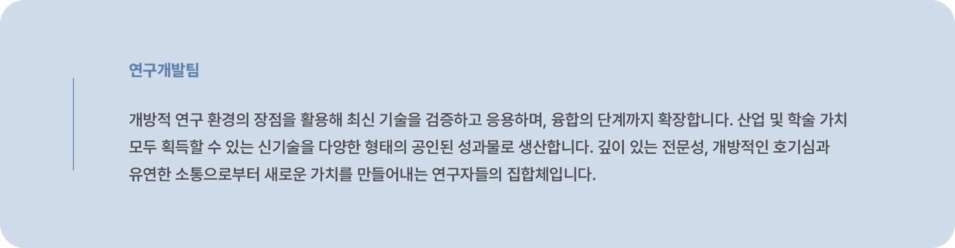 탐색적 연구는 소수 연구원이 짧은 기간 동안 파일럿 실험으로 PoC를 해보거나, 스터디 그룹을 만들어 집중적으로 학습하는 형태도 포괄합니다. 작년에는 하루가 다르게 발전하는 LLM 트렌드를 연구 내용에 반영하기 위해, 특별히 긴급 PoC 프로젝트를 별도로 진행하면서 현업 부서와 기술 효용성을 깊게 따져보기도 했습니다. 덕분에 최신 AI 기술에 대한 카카오뱅크 내부 이해도 증진에 연구소가 큰 기여를 했고, PoC 중에 정식 연구과제로 발전하거나 실제 서비스에 적용되는 기술도 나오게 되었습니다.