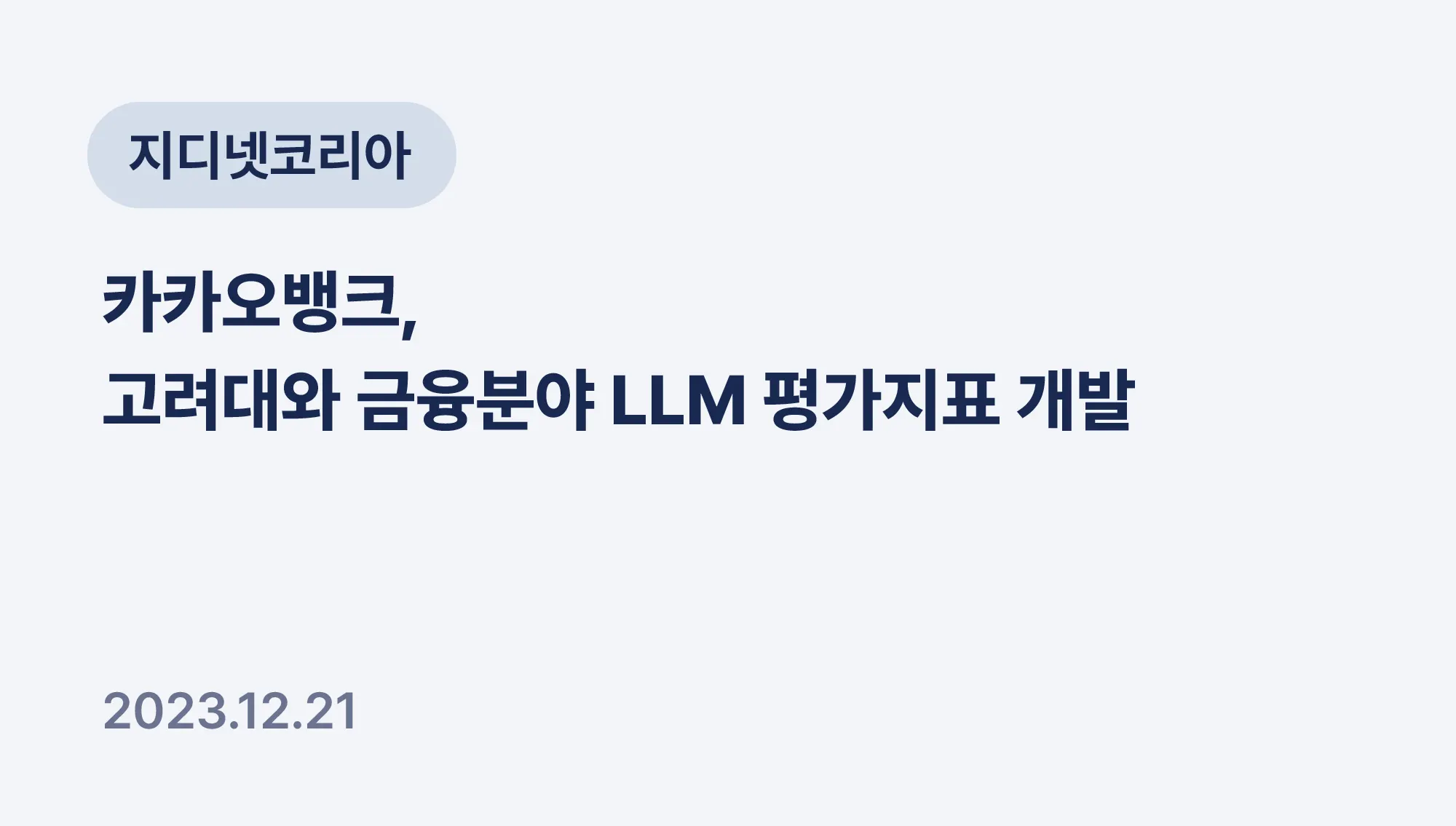 카카오뱅크 금융기술연구소가 고려대학교 DSBA연구실(Data Science & Business Analytics Lab)과 금융분야 대규모 언어모델(LLM) 평가 지표 개발에 나선다.
