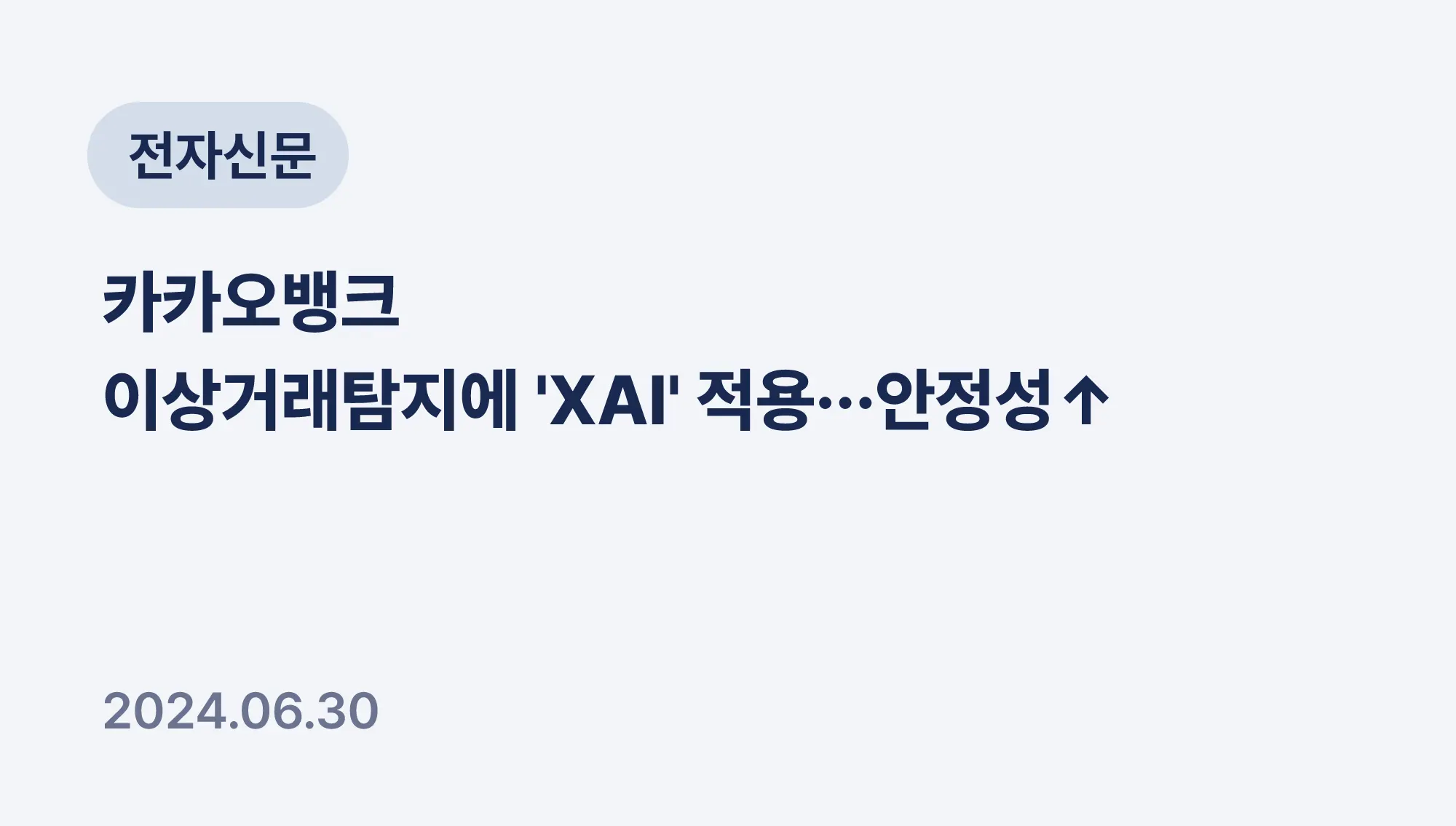 30일 카카오뱅크에 따르면 이 회사는 최근 이상금융거래탐지시스템(FDS)을 비롯해 신용평가 등에 XAI 기술을 도입했다.