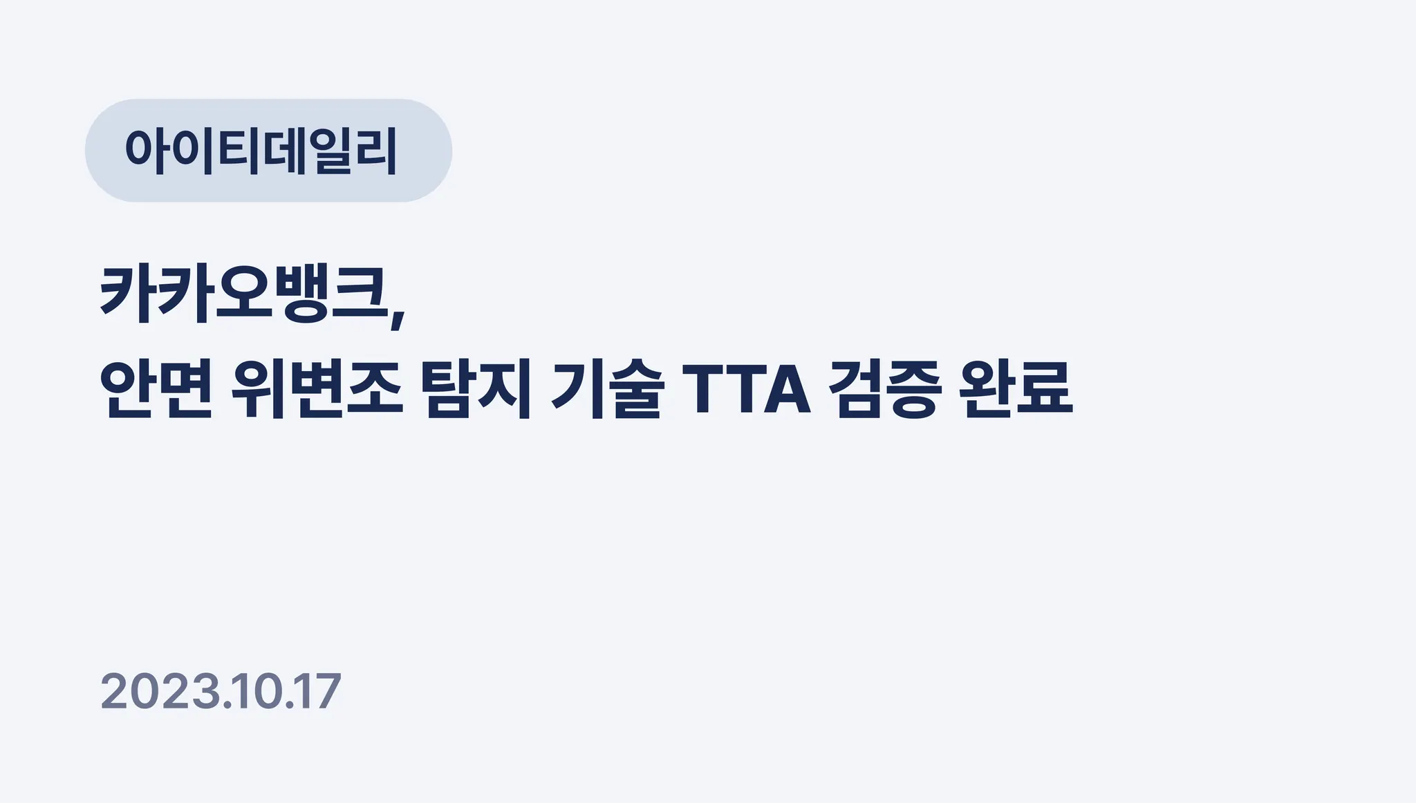 카카오뱅크, 안면 위변조 탐지 기술 TTA 검증 완료
