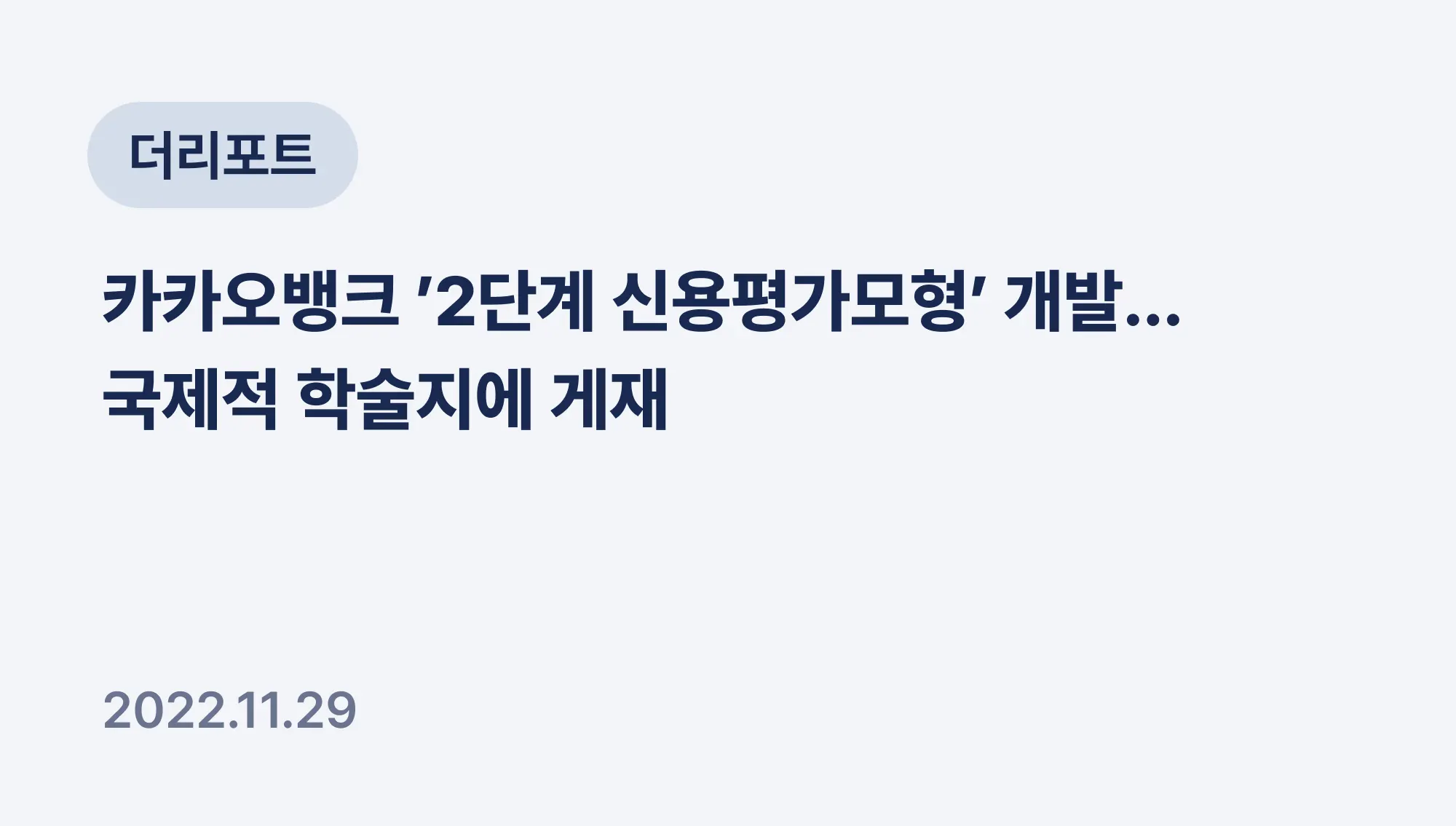 카카오뱅크 '2단계 신용평가모형' 개발...국제적 학술지에 게재
