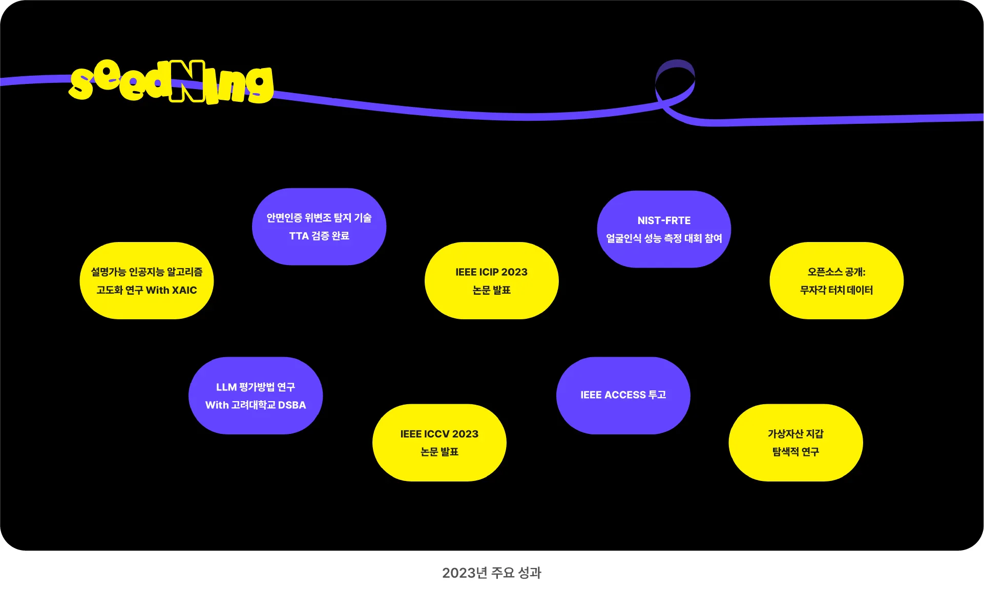 2024년 1월 4일은 카카오뱅크 금융기술연구소가 개소한 지 3주년이 되는 날입니다. 개소 3주년을 기념하여 연구전략팀 Vida와 Louis는 2023년 연구성과들을 체험하고 관람할 수 있는 전시 행사로 꾸며보았습니다. 행사 이름 <Seedning>은 ‘상상의 씨앗(Seed)을 가꾸어 현실의 혁신으로 만들어내는 연구를 지속(Ing)함’을 의미합니다. 단순한 기술 설명을 벗어나, 연구소 연구성과들을 AI와 다양한 미디어 기술로 시각화하여 관람객들이 쉽게 이해하고 체험할 수 있도록 하였습니다.
