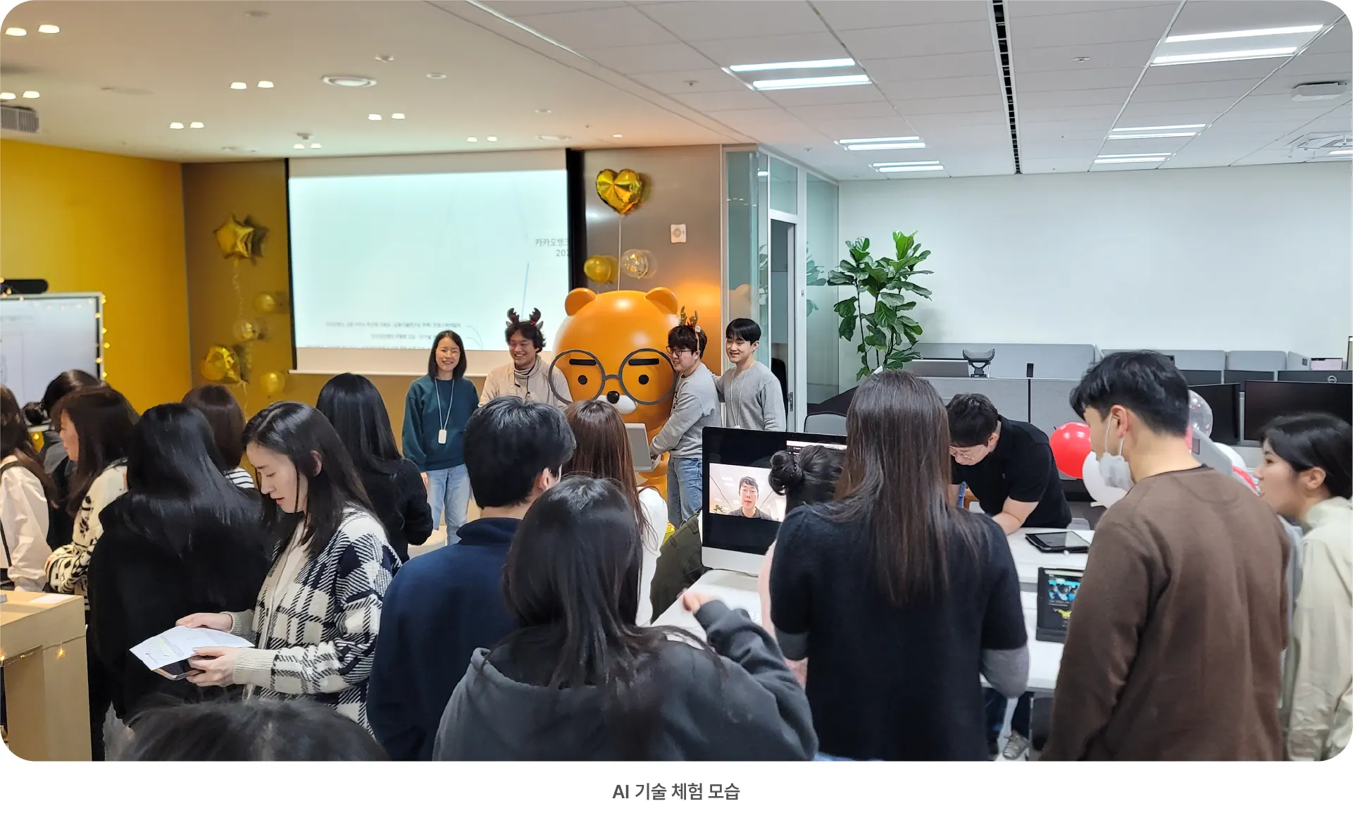 카카오뱅크 임직원이 최신 AI 기술과 서비스에 쉽게 다가갈 수 있도록, 금융기술연구소에서 자체 개발한 AI 기술과 외부의 상용 AI 서비스를 직접 체험할 수 있는 공간을 마련했습니다. 평소 사용해보지 못했던 AI기술과 서비스를 직접 체험함으로써 AI 신기술들이 이미 우리 생활에 가까이와 있음을 몸소 체감하게 하였습니다. 앞으로도 금융기술연구소는 미래 금융서비스 발굴을 중심으로 새로운 아이디어의 창출과 융합, 창의적 도전의 창구가 되고자 합니다.