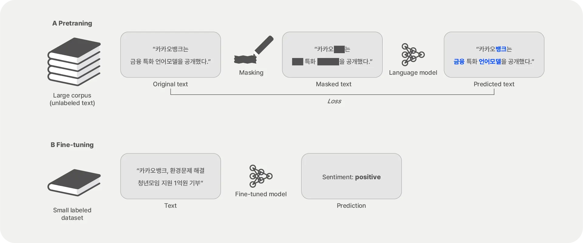 최근, 대규모 언어모델(Large Language Models, LLM) 등장으로 자연어처리 기술이 비약적으로 발전했으나 금융 용어 및 도메인 지식에 전문화된 언어모델은 부족해서 은행을 비롯한 금융기관에서 최신 언어모델을 쓰기에 아직 어려움이 많습니다. 사전학습 언어모델(Pre-trained Language Model, PLM)은 범용 언어모델보다 특정 도메인 이해도를 집중적으로 높이기 위한 방식입니다.